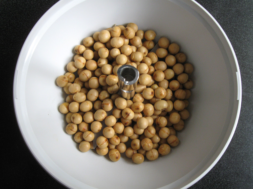 - Use an Electric Grinder to grind the cooled Soy Beans until desired texture is achieved. I grind them very finely. *Note: Make sure your grinder is powerful enough for this work.
