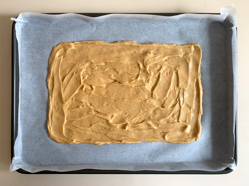 - Thinly and evenly spread the mixture over the prepared tray.