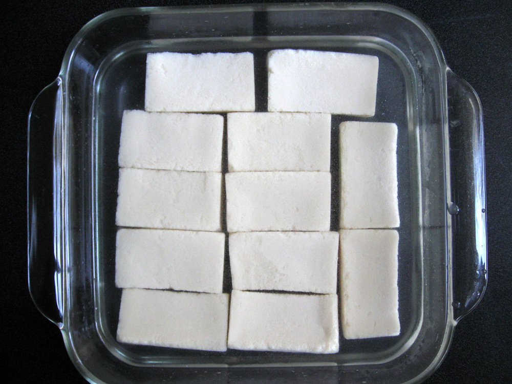 - You should soften the Dry Kōya Dōfu according to the instruction on the package, but the common method is soaking them in warm water. Place warm water in a baking dish or something similar, place Dry Kōya Dōfu, and allow to soak for 5 to 10 minutes or until soft.