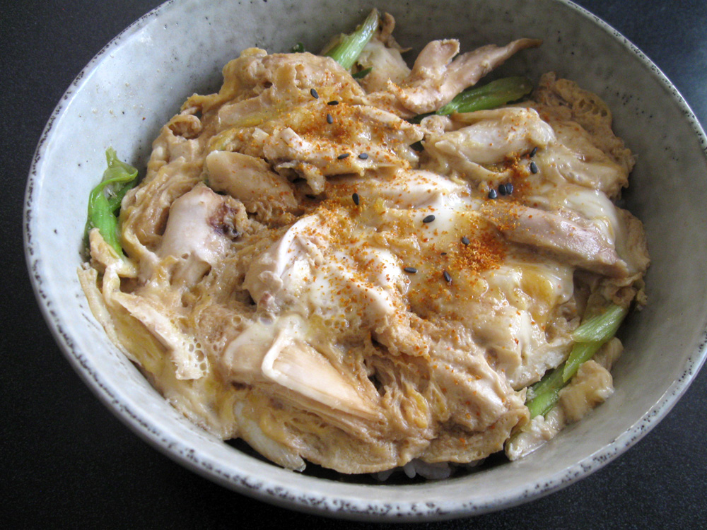 When you have a little bit of leftover Roast Chicken, what do you do? Do you make a Sandwich? Do you use it for Salad? Do you just eat it? Here is a suggestion. Super quick & easy ‘Oyako’ Don. It’s a rice bowl dish. There is freshly cooked Rice under the mixture, though you can’t see it in the photo.