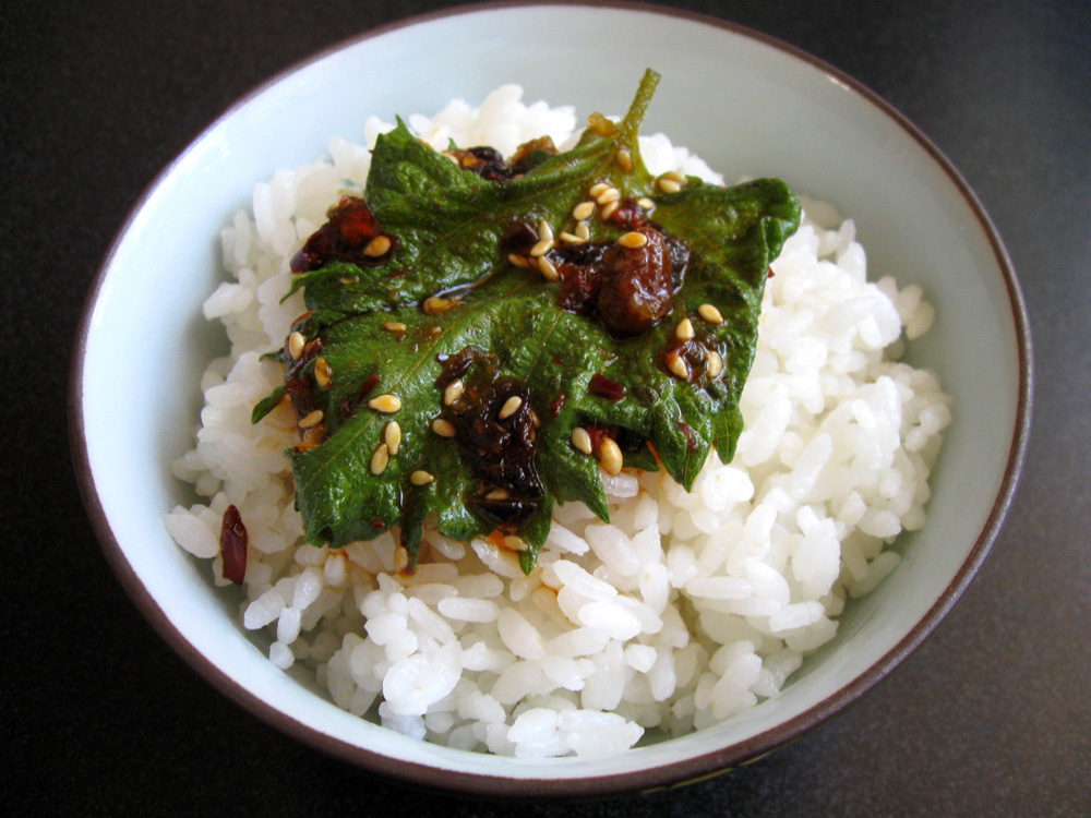 My Green Shiso (Perilla) plants have been growing very well this summer. It’s hard to keep up eating the fragrant leaves, because I am the only one who wants to eat them. I looked for a new way to enjoy Shiso leaves, and found that many people marinate them in Soy Sauce. I instantly thought about adding the delicious Crispy Chilli Oil to it. Today I marinated 12 leaves and they were yummy. I ate all of them for myself with freshly cooked Rice.