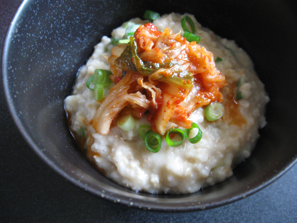- *Note: You can add some condiments. The below photo it the Miso Oats Porridge with Kimchi.