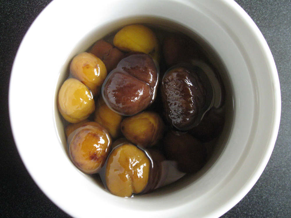 - *Note: Handle Chestnuts carefully because they are easy to break. If you want to make ‘Mock Marron Glacé’ soft, you need to simmer them in syrup and that increases the risk of breakage.