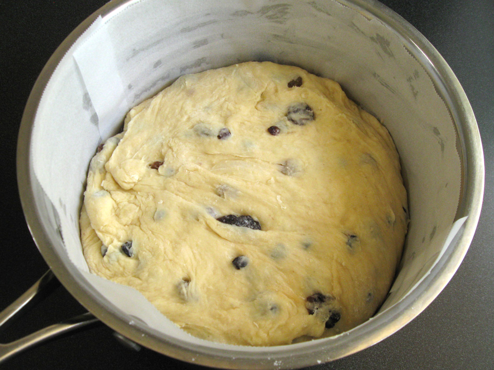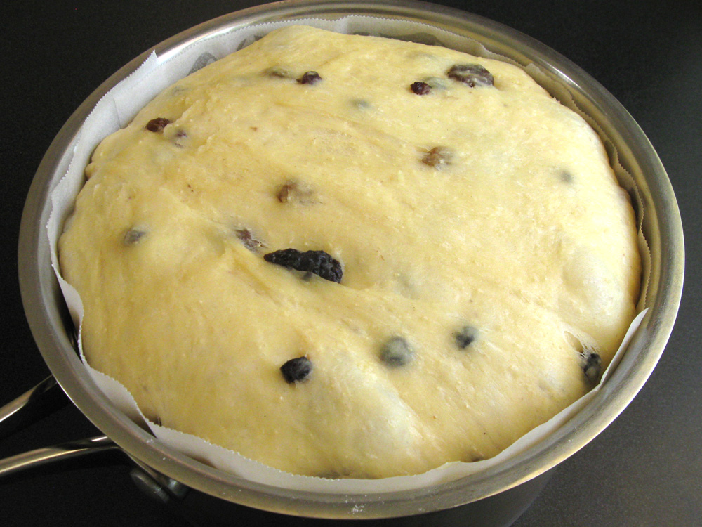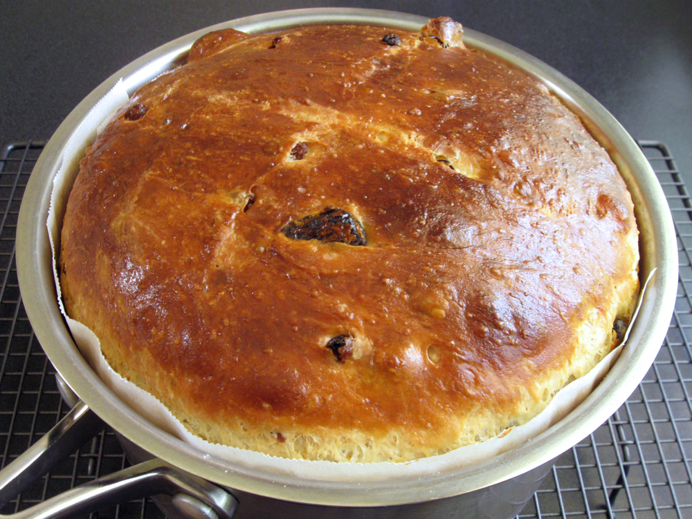 - Cut a shallow cross on top, brush with the saved Egg, and bake for 40 to 50 minutes. (As I used a saucepan, it took slightly longer.) When the top gets too dark, cover with a sheet of foil. Transfer to a wire rack and cool.