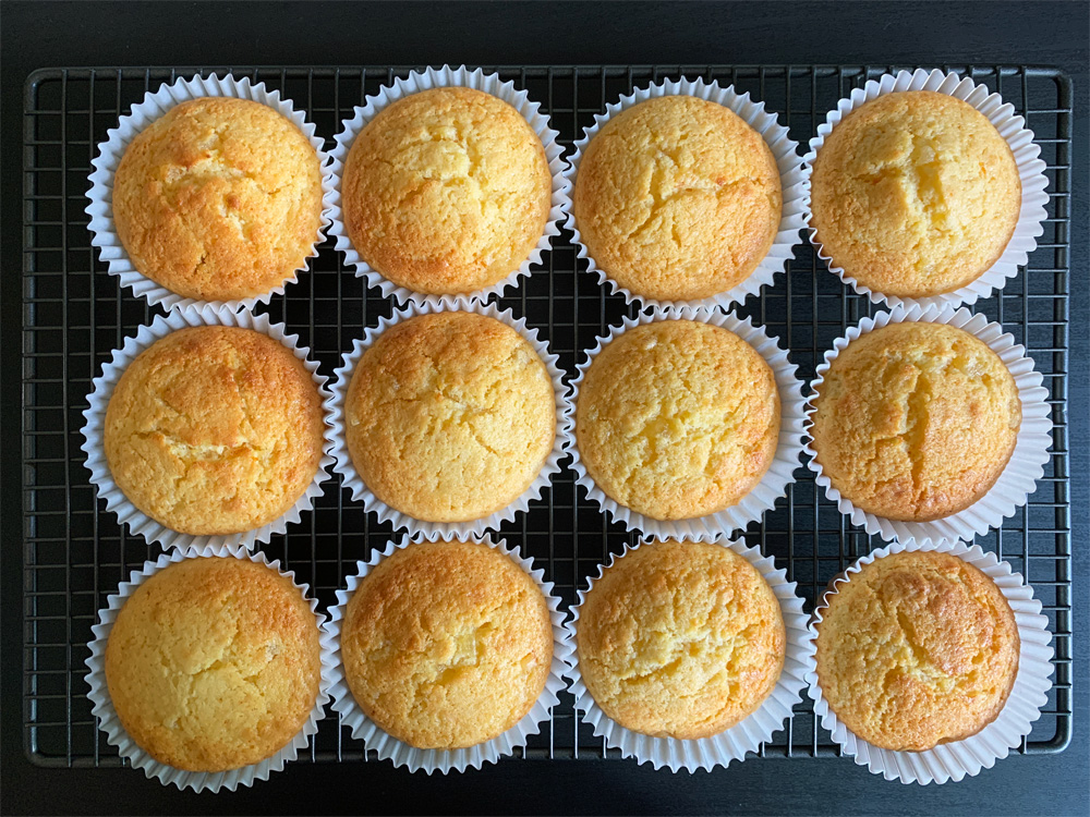 - Bake for about 20 minutes or until golden and cooked through. Transfer onto a wire rack and cool completely. I dusted with Icing Sugar when the cupcakes are cooled.