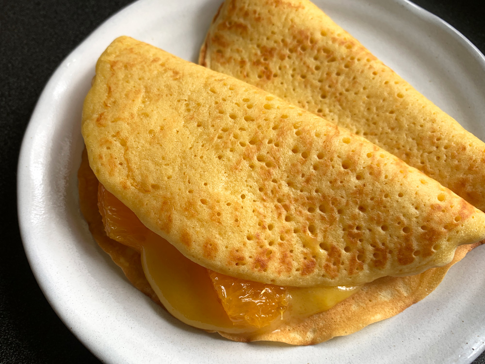 - Cook until bubbles appeared on the surface, flip it over, and cook the other side. Serve with your favourite fillings and toppings. *Note: Today I served with Orange Curd.