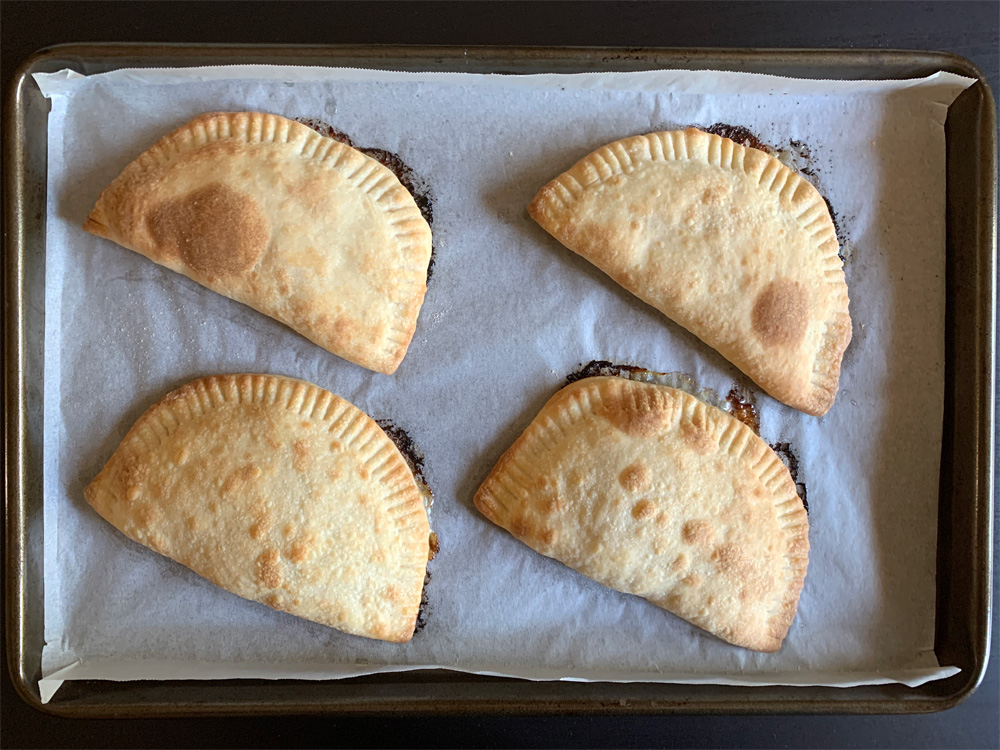 When I heard that ‘Chebureki’, Deep-fried Meat Stuffed Pastry, is a very popular street food in Ukraine, I wanted to taste them. As it is very difficult to visit the country, I decided to make them by myself. ‘Chebureki’ were delicious, and I have shared my easy recipe on this website. However, since I had a kitchen accident and burnt my face with hot oil, I have been reluctant to use a lot of hot oil. I know many people are scared to deep-fry anything at home. Here is my Oven-baked ‘Chebureki’ recipe. Deep-fried ‘Chebureki’ definitely taste better, but baking is easier.
