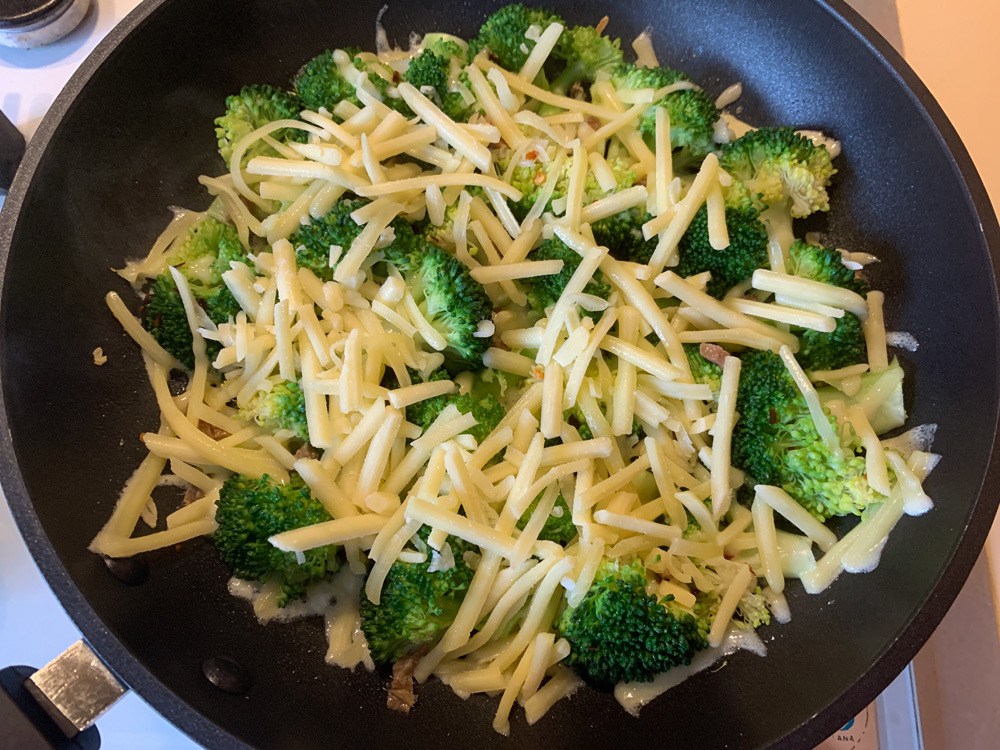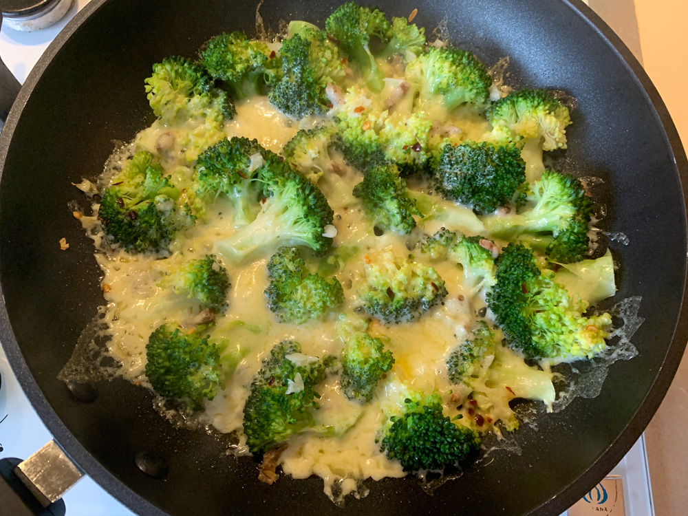 My ‘Pan-fried Broccoli & Cheese’ has become one of my family’s favourite Broccoli dishes. It is super quick & easy. Steam-frying in a frying pan is truely the best method to cook Broccoli. Today I added Anchovy. Of course I added Garlic as well. It couldn’t go wrong, could it? It was absolutely delicious.