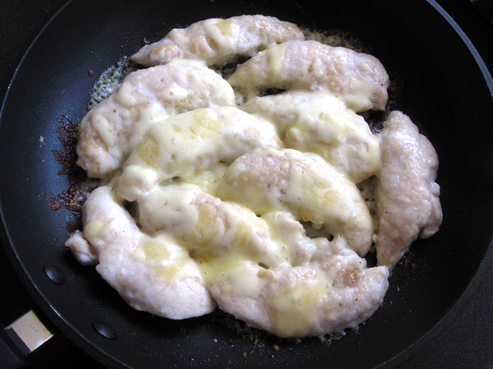 I was going to cook ‘Baked Chicken Tenderloins’ today. However, it was quite hot in the evening and I didn’t want to use the oven. So, I decided to cook them in a frying pan. Then I realised that I actually could make it cheesy. I often cook Broccoli & Cheese in a frying pan. Chicken Tenderloins turned absolutely delicious and very cheesy. Why have I never tried this before?