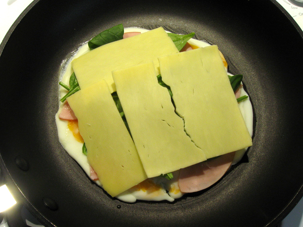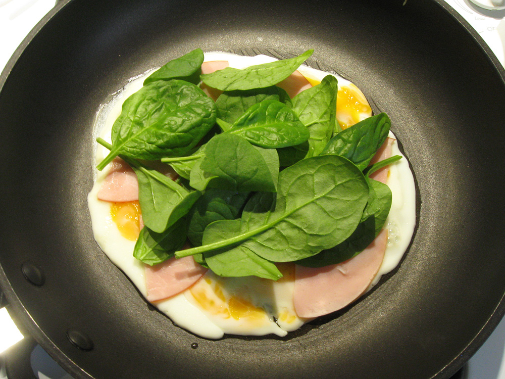 - Arrange additional Ingredients. I added some pieces of Ham and Baby Spinach today.
