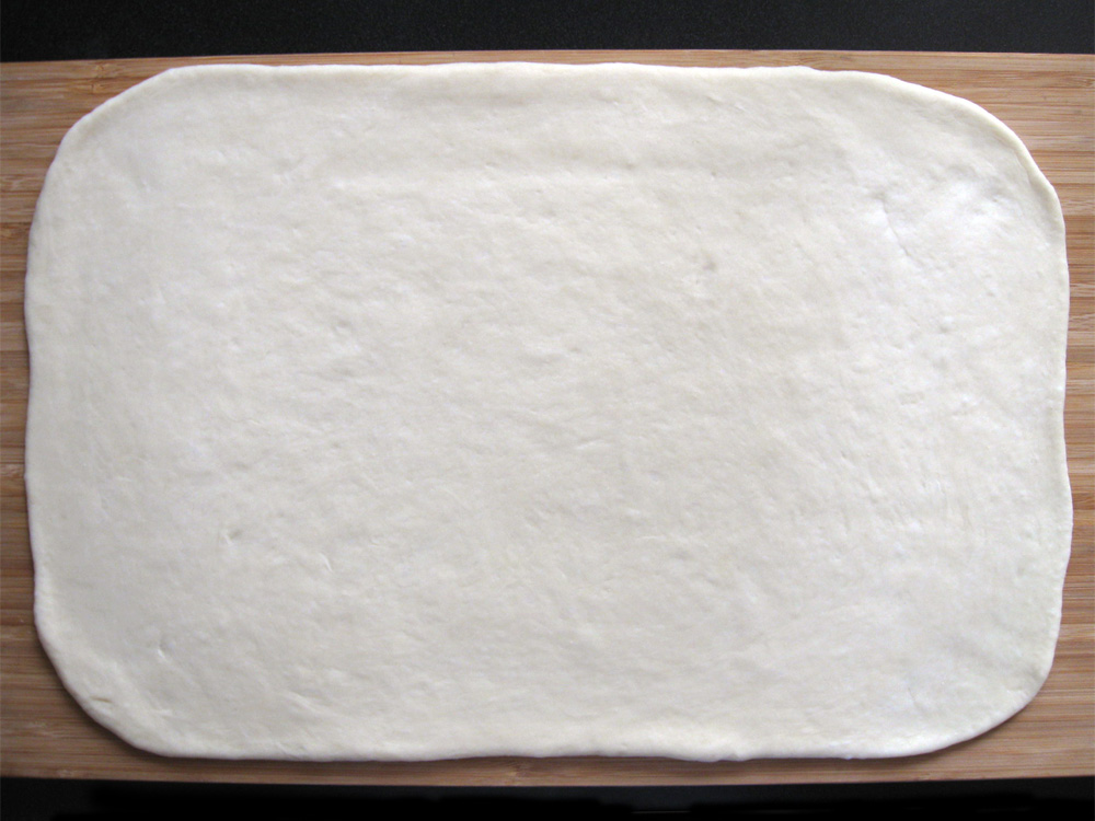 - Place the dough on a lightly floured surface and roll out into a very large oblong. *Note: You can divide the dough into 2 portions and make two oblongs.