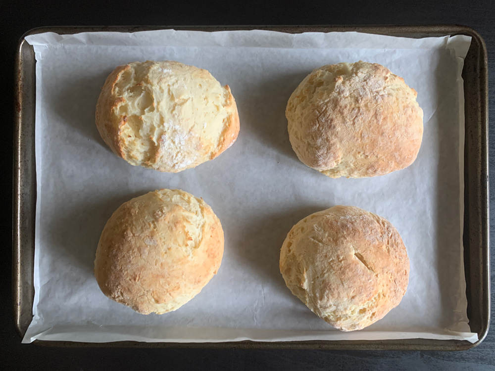 - Place the balls of dough on the prepared tray, flatten slightly, and bake for 20 minutes OR until golden and hollow when tapped. *Note: If the rolls are smaller, alter the baking time.
