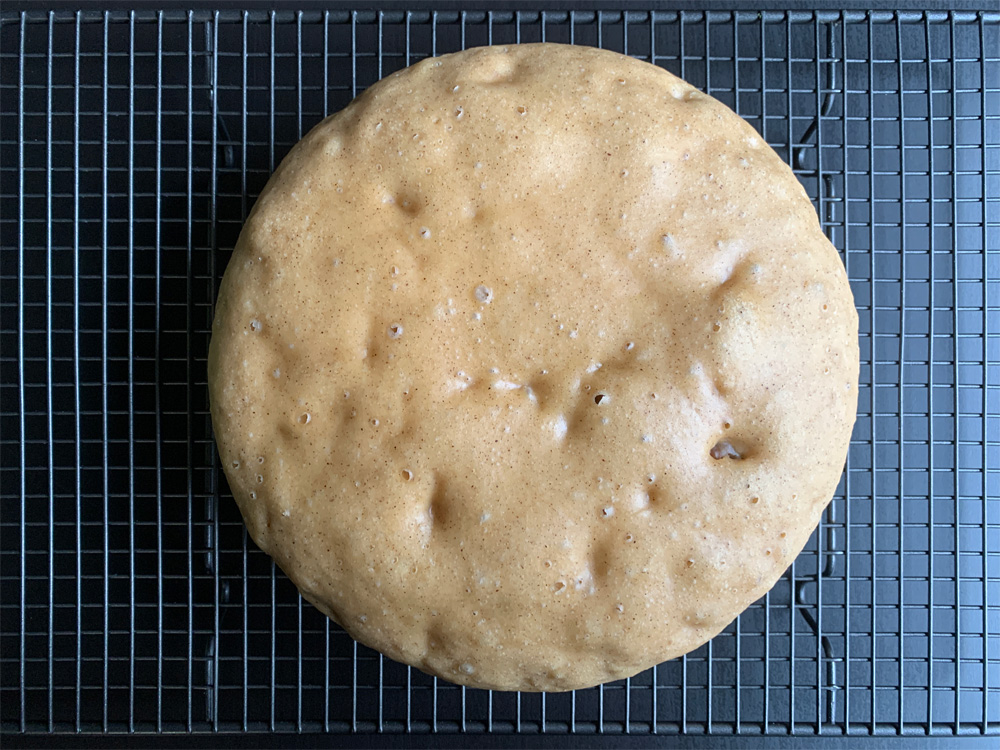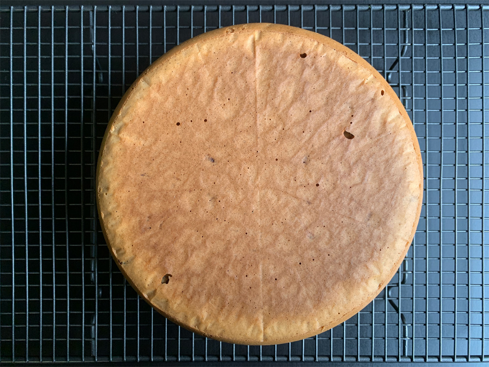 - *Note: Top of the cake cannot be browned, but the cake looks fine upside-down. I used my 10 cup capacity rice cooker which inner pot is 20cm in diameter. It took 40 minutes to cook.