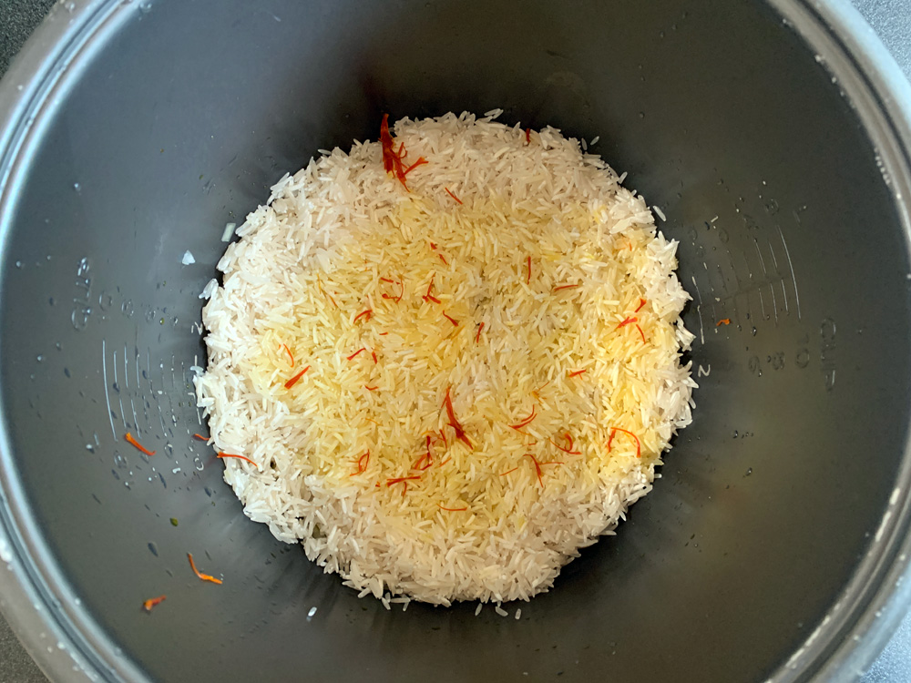 I don’t cook this Saffron Rice very often because Saffron is expensive. When I want to serve yellow coloured Rice with Curry, I usually cook ‘Turmeric Rice’. Today I needed to use up Saffron Threads that were getting old. This is a rice cooker recipe. It’s super easy to prepare.