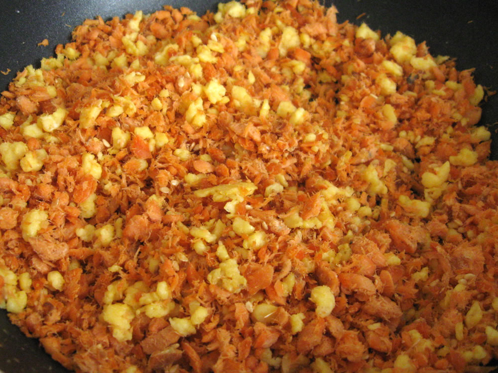 - Combine Salmon flakes, Egg crumbs, Toasted Sesame Seeds and Toasted Nori.