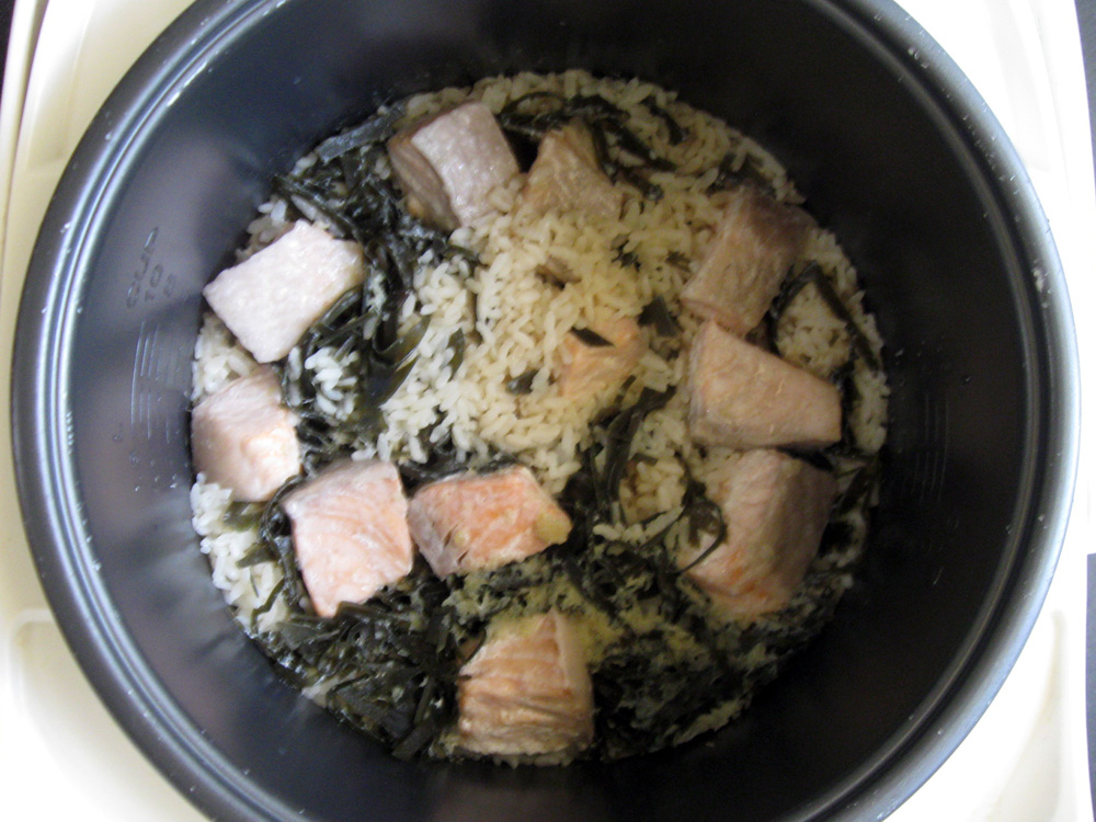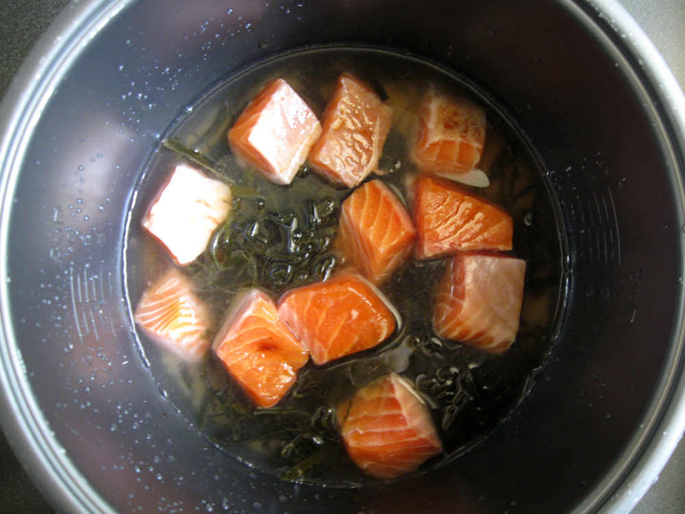 This is another way to enjoy Kombu (Kelp). Using a rice cooker, it is super easy to cook. You don’t need to add Dashi Powder as Umami comes out from Kombu. Naturally, you can add some Vegetables such as Carrot, Asian Mushrooms, etc. Just remember that you must salt the Salmon fairly well.