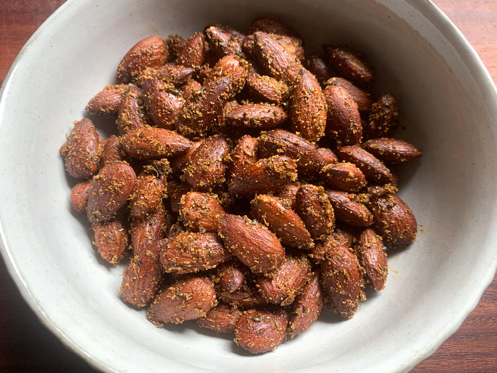 How can I translate a Japanese word ‘Otsumami’ into English? It is not ‘Appetiser’ or ‘Snack’. ‘Otsumami’ is something to nibble often with a drink, which is most likely an alcoholic drink. The other day I needed to make ‘Otsumami’ for an unexpected occasion, and this quick & easy ‘Spicy Almonds’ was perfect.