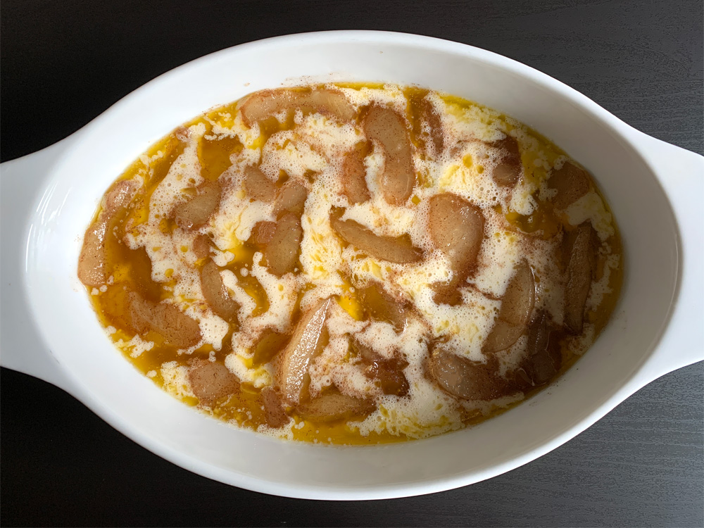 - Spoon the Apple mixture over the Batter evenly, and bake for 30 minutes or until nicely browned and cooked through.