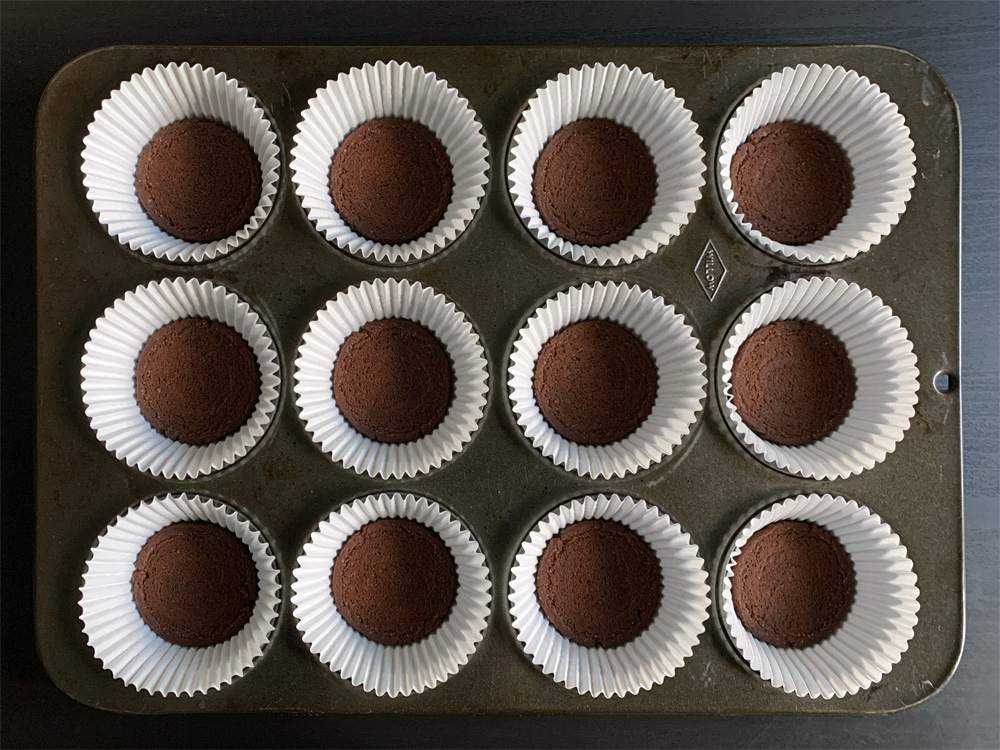 - Preheat oven to 170℃. Line a 12-hole medium-size muffin tin with paper cases. Place 1 Biscuit, top side facing down, in each case, and press down. The biscuits should fit in.