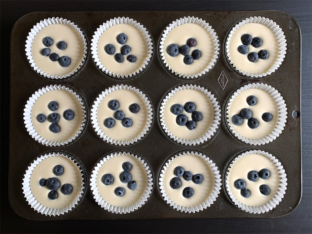 - Pour the mixture into cake cases. It would be easier to do so if you use a jug. Transfer some mixture into a jug and pour it into cases, and repeat. Add some Blueberries on top, but it is optional. You can add other berries.
