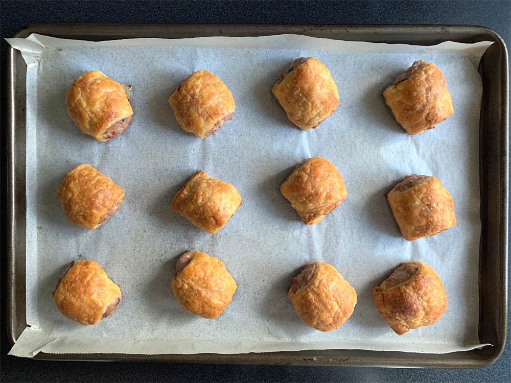 - Cut each Sausage Roll into 6 pieces, arrange on the prepared tray, and bake for 20 to 25 minutes OR until nicely browned and cooked through. *Note: You can cut them into larger pieces. Alter the baking time.