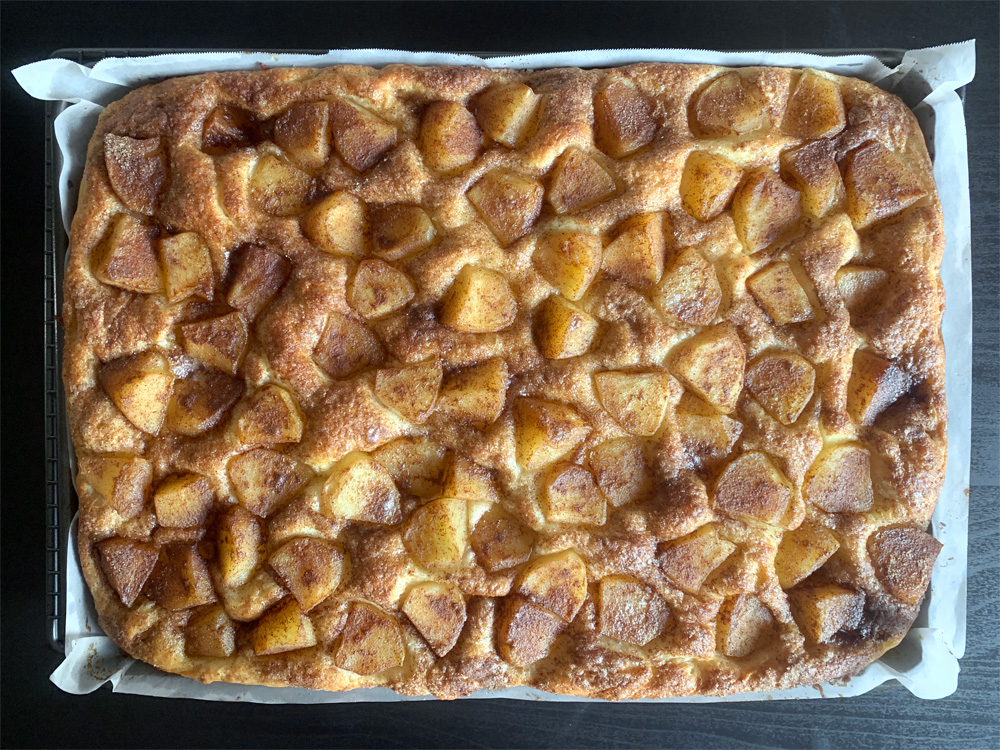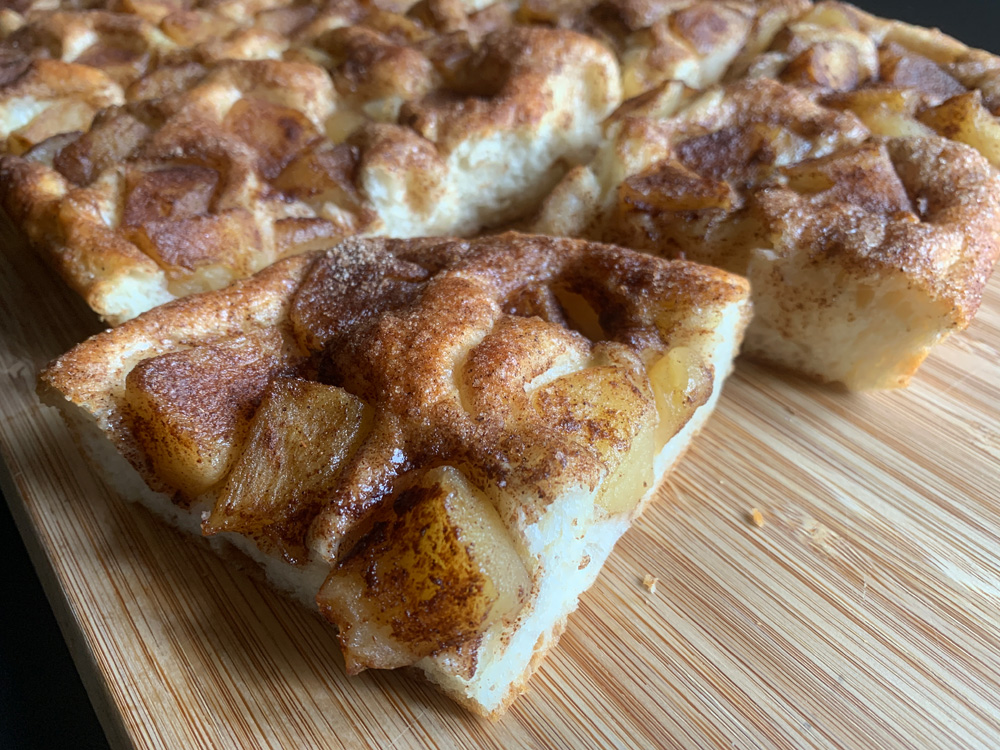 When I made ‘Sweet Focaccia with Cinnamon Sugar Topping’, I though I could have added Apple. So I made this Sweet Focaccia with Apple today. I added slightly cooked Pink Lady Apples. I didn’t drizzle Icing and I’m glad I didn’t. This focaccia was sweet enough for me, but you may wish to add Icing and make it sweeter.
