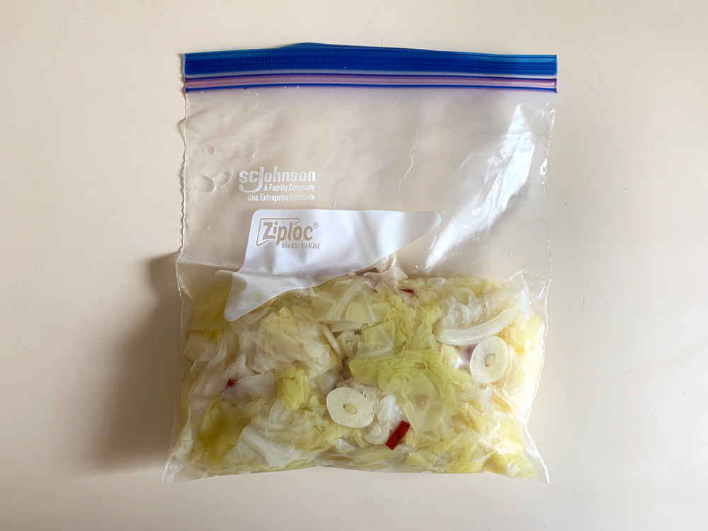 - Set aside for 30 minutes or longer, occasionally tossing. After cooled down, keep in the fridge before serve. *Note: I recommend to leave it in the fridge overnight. I used a Ziplock bag to marinate.