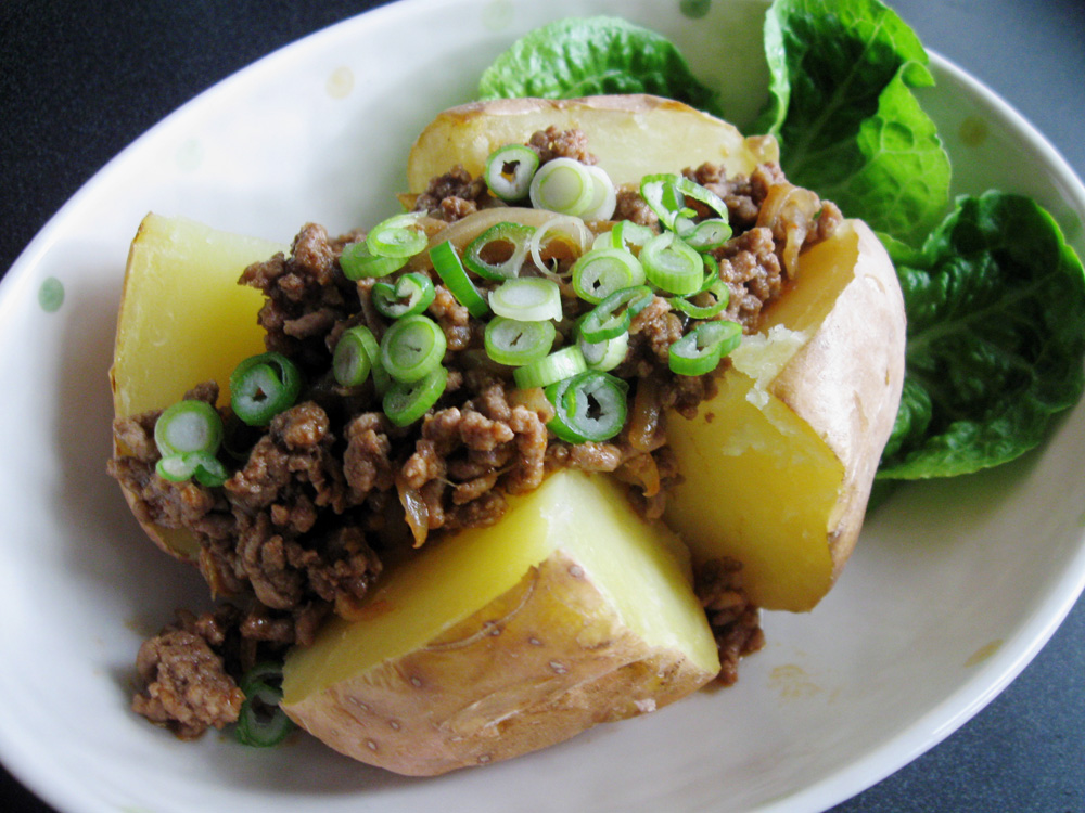 My family enjoyed ‘Jacket Potato With Spicy Miso Pork’ very much, and I have been inspired to create another Asian topping for baked potatoes. This is Korean inspired ‘Bulgogi Beef’. Using Beef Mince, it’s easy to cook! Makes 4 Servings Ingredients 4 Large Potatoes500g Beef Mince1 Onion *finely sliced1 teaspoon Sesame Oil1 Spring Onion *finely …