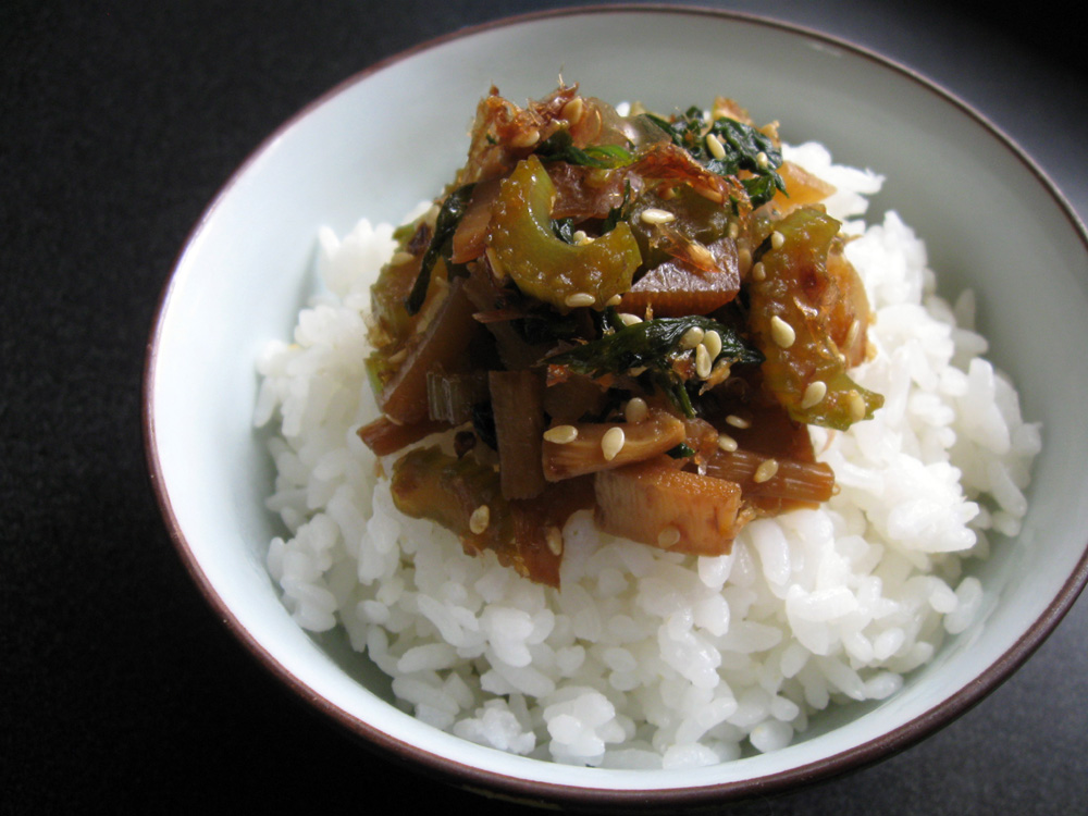 ‘Tsukudani’ is a Japanese dish of commonly small Fish or Sea Vegetables cooked in Mirin (OR Sake), Sugar and Soy Sauce to preserve the ingredients. Vegetables are also cooked in the same way. They are great condiments for freshly cooked rice. Today I cooked Celery with canned Bamboo Shoot as they are very suitable for …