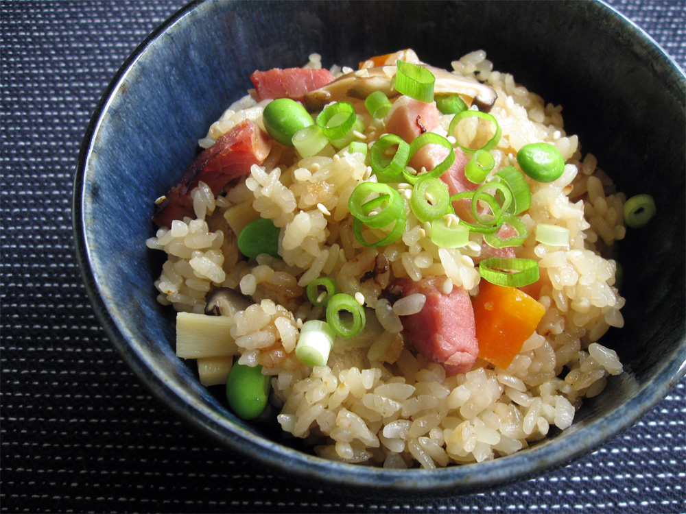 ‘Okowa’ is a type of Glutinous Rice dish. My mother used to cook it by steaming, but I cook it using a rice cooker just like ‘Takikomigohan’. When you use Glutinous Rice, you need to reduce the amount of liquid. As my ‘Pork Speck Takikomigohan’ was so successful, I tried to cook Asian flavoured version …