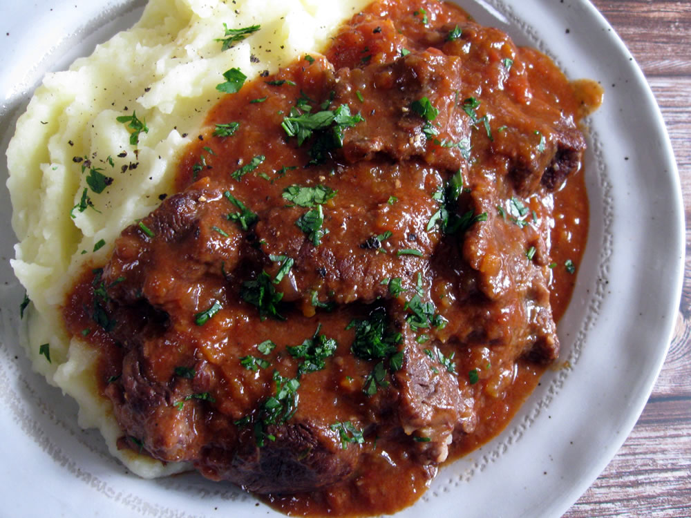If you have time, just slow cook for a few hours. If you have a pressure cooker, this dish can be cooked in half an hour. Saving time and energy is the ideal way of cooking for me. This time, I served it with mashed potatoes, but boiled potatoes, couscous, polenta or nice crusty bread …
