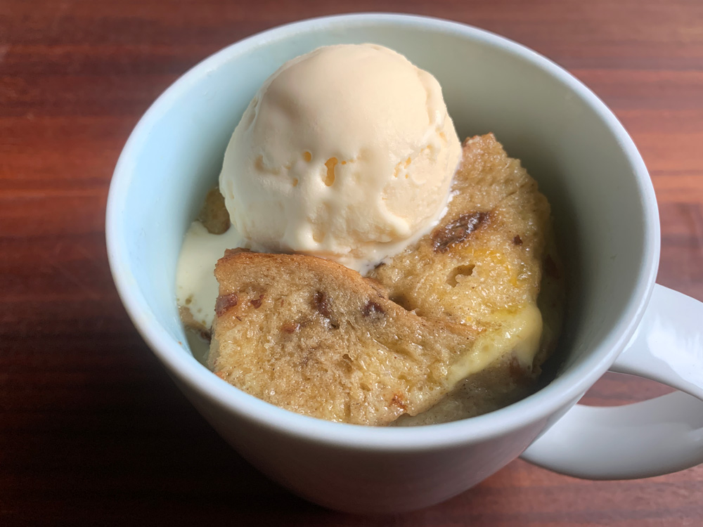 Yesterday my daughter gave me a loaf of Raisin Bread, which was already quite stale. It was actually perfect for ‘Bread Pudding’, but I was too tired to make it. And as always, once I started thinking about ‘Bread Pudding’, the craving kicked in and I couldn’t stop it. The easiest solution is Mug Pudding. …