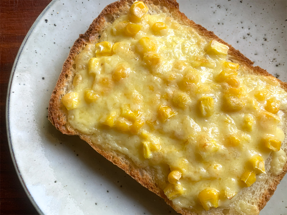If you have a mini toaster oven, this kind of Grilled Cheese Toast is easy to make. You can use your favourite sauce and add your favourite ingredients. Today I used Japanese Mayonnaise as sauce and add Sweet Corn Kernels. This is seriously delicious. Makes 1 Serving Ingredients 1 slice Bread *I used my ‘No-Knead …