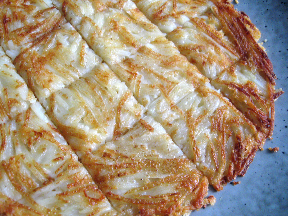 When I was a financially challenged Uni student, I often cooked this cheese & potato snack using a mini toaster oven. However, a non-stick frying pan works better. If you don’t have a non-stick frying pan, you can place a sheet of baking paper in a frying pan, so that the melted cheese won’t stick …
