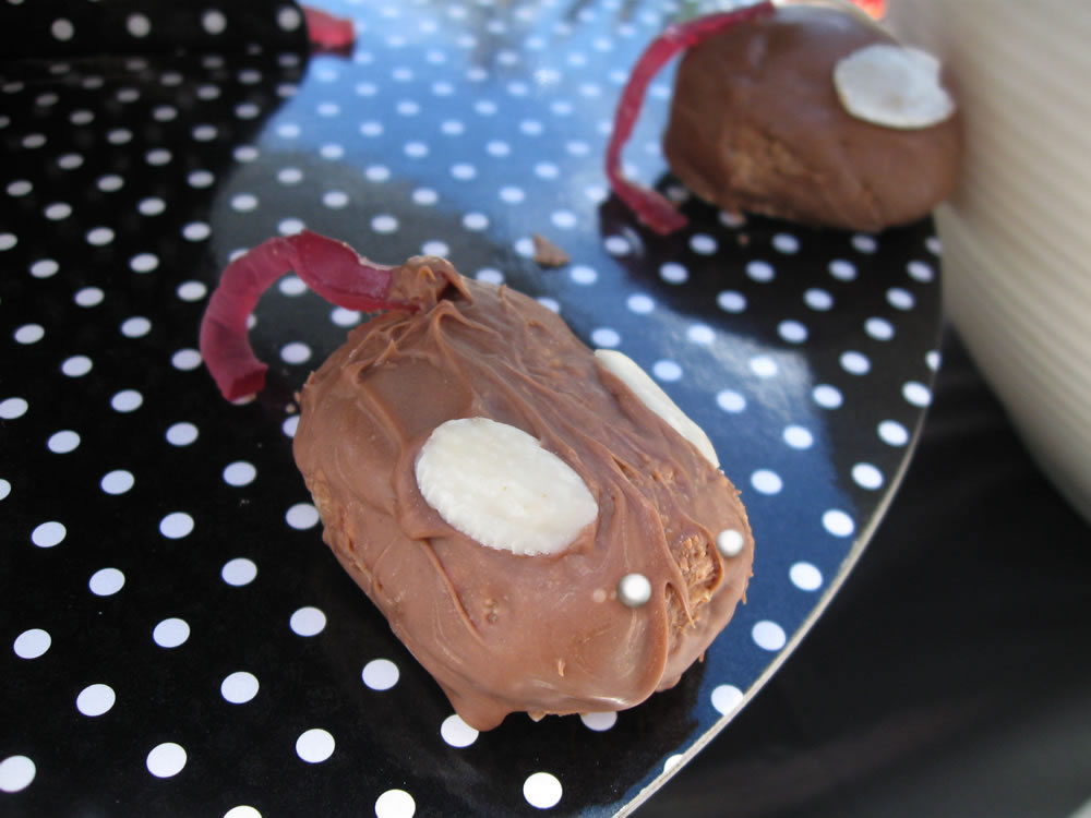 My daughter found some Chocolate Mouse recipes on the internet and made these. She said she should have made one end of each ball more pointy for the face. This can be a good family activity for Halloween. Ingredients Crushed Plain Biscuits 1& 1/4 cupsCocoa Powder 1 tablespoonCondensed Milk 1/2 cupDesiccated Coconut 1/4 cupMars Bar …