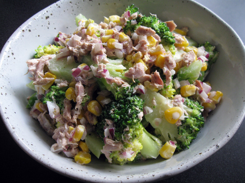 Simple is often the best. ‘Tuna & Mayo’ is a yummy combination. I knew Broccoli would go well with it. Then I added Sweet Corn and a little bit Onion. Such a super simple salad, so easy to make, and so delicious. You can cook Broccoli as you like, but my favourite method is pan-steam-fry. …