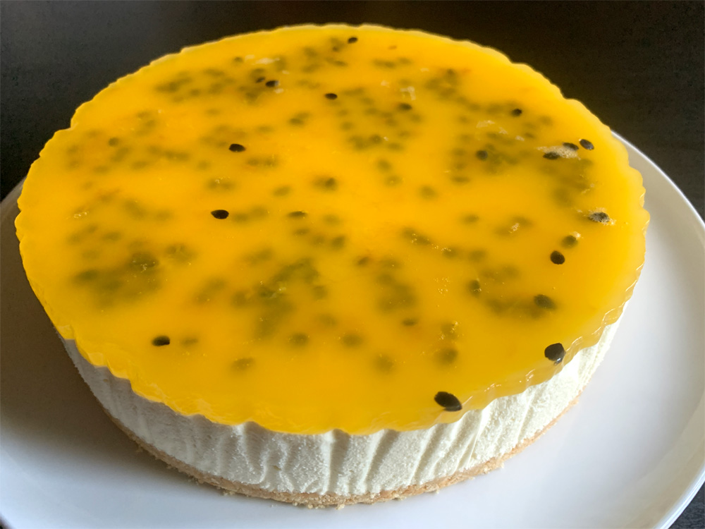 To make this Cheesecake, you would need 5 to 6 Passionfruit. If fresh Passionfruit are not available, you can use Canned Passionfruit Syrup. Passionfruit Jelly Topping looks pretty with seeds, but you may wish to remove all seeds. It can be easily done by straining the jelly mixture. Cake Tin 18cm Round Springform Cake Tin …