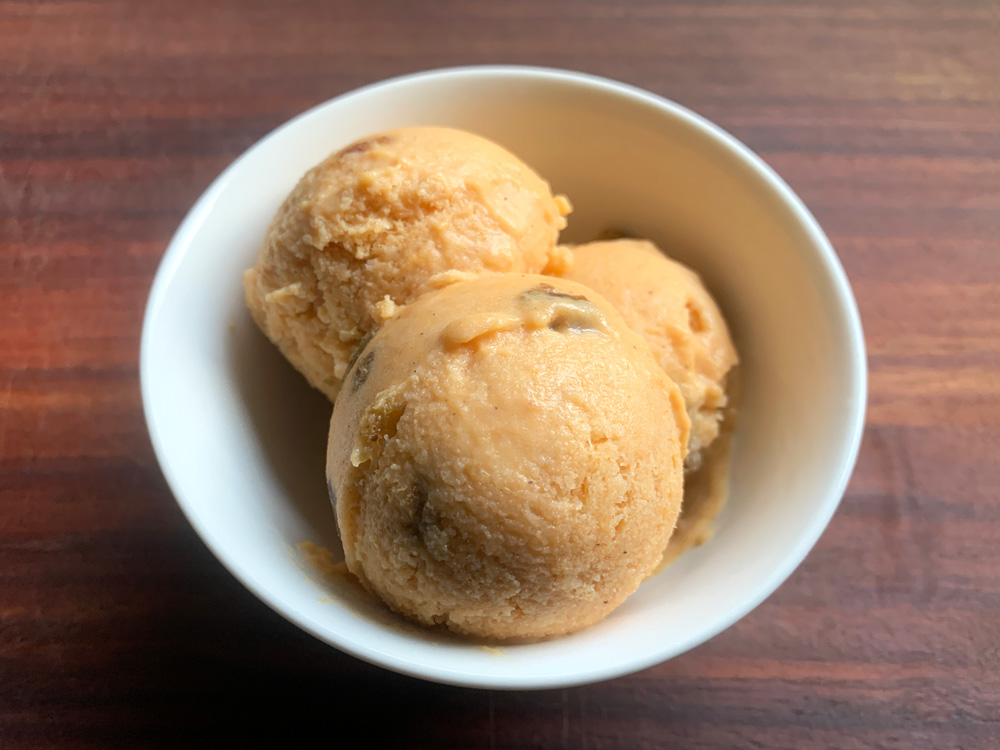 Fruit are popular ingredients to make Ice Cream. Chocolate and Nuts are also popular. Have you ever used Sweet Potato? Puree softly cooked Sweet Potato and add it to Vanilla Ice Cream. Today I used an orange coloured Sweet Potato. I added a little Ground Cinnamon, and Rum Raisins as well. This home made Ice …
