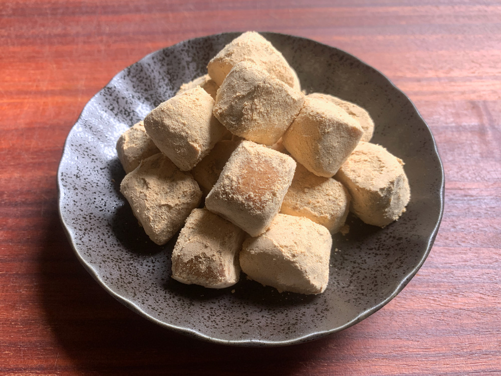 ‘Kinako Candies’, a very old Japanese sweet, is traditionally made with ‘Kinako’ (Finely Ground Roasted Soy Beans) and starch syrup called ‘Mizuame’. My recipe uses Honey instead of ‘Mizuame’. However, some people can’t eat Honey. This is a new version of ‘Kinako Candies’, and it can be made with Sugar and Cream. Makes 16 to …