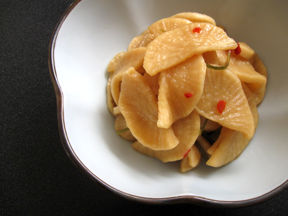 ‘CRUNCH! CRUNCH!’, it makes a loud sound as you bite these pickled Daikon (White Radish). How to make it extra crunchy? You dehydrate Daikon before marinate. In the region where I grew up, whole Daikon radishes are tied on ropes and hung outdoor in the dry cold winter air to dry. Once they are wilted, …