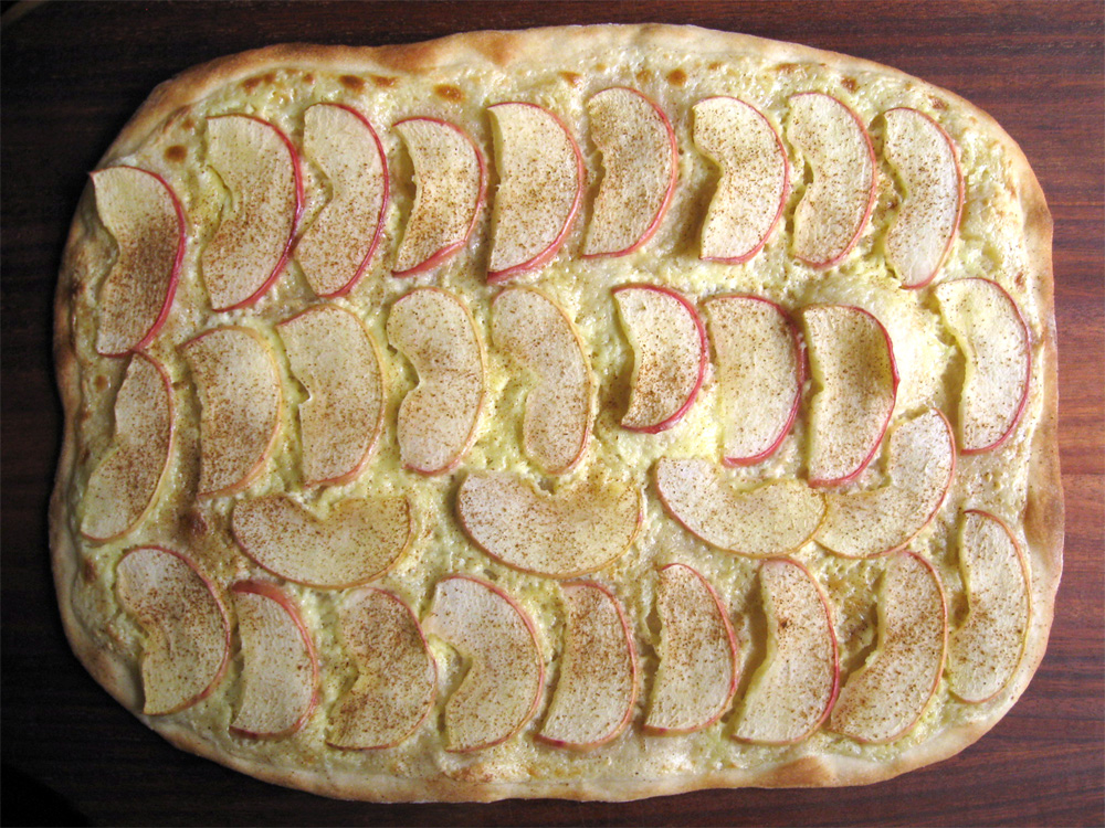 I rarely make Pizza at home, but I make Flammkuchen very often. Flammkuchen is not well known in Melbourne where I live. It’s a pity people don’t know about it. Flammkuchen is sometimes called ‘German Pizza’ and it is quite easy to make at home. Toppings can be anything. Today I made slightly sweet one …
