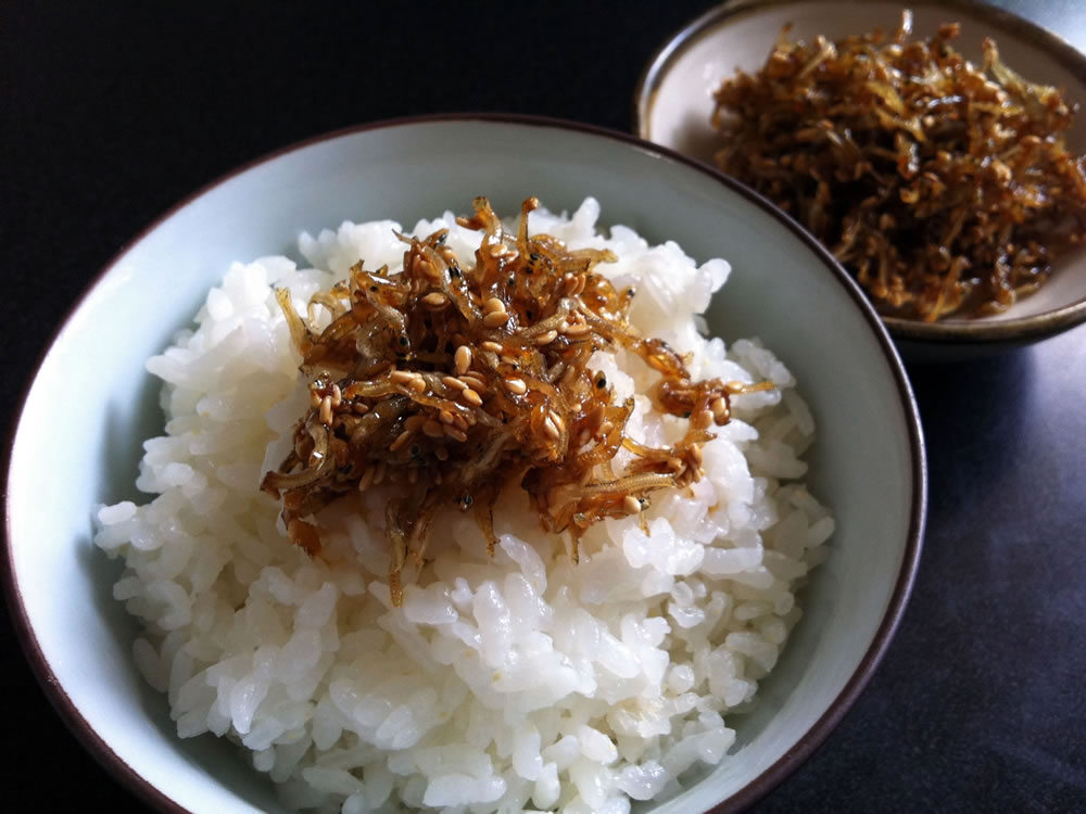 In the place in Japan where I am from, dried baby sardines are called ‘Chirimenjako’ and those tiny fish are used for many dishes. One of my favourites is ‘Tsukudani’. ‘Tsukudani’ is commonly small fish, shellfish or seaweed cooked in Mirin, Sugar and Soy Sauce to preserve the ingredients. Makes 4 Servings Ingredients Chirimenjako (Dried …