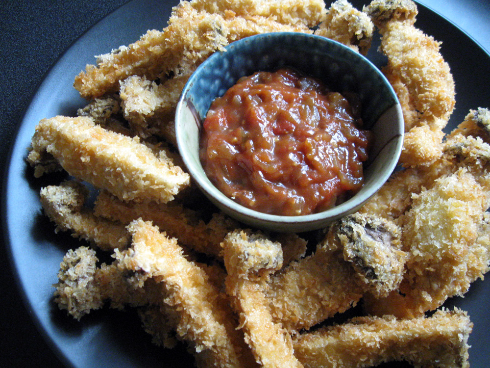 King Oyster Mushrooms (aka Eryngii), that have meaty texture, are suitable for crumbed fries. As King Oyster Mushrooms don’t have strong smell or taste, these crumbed fries can be enjoyed with different flavoured sauces. I found my ‘Curry Ketchup Sauce’ was good. Mexican Salsa and Italian Tomato Sauce were also good. What sauce would you …