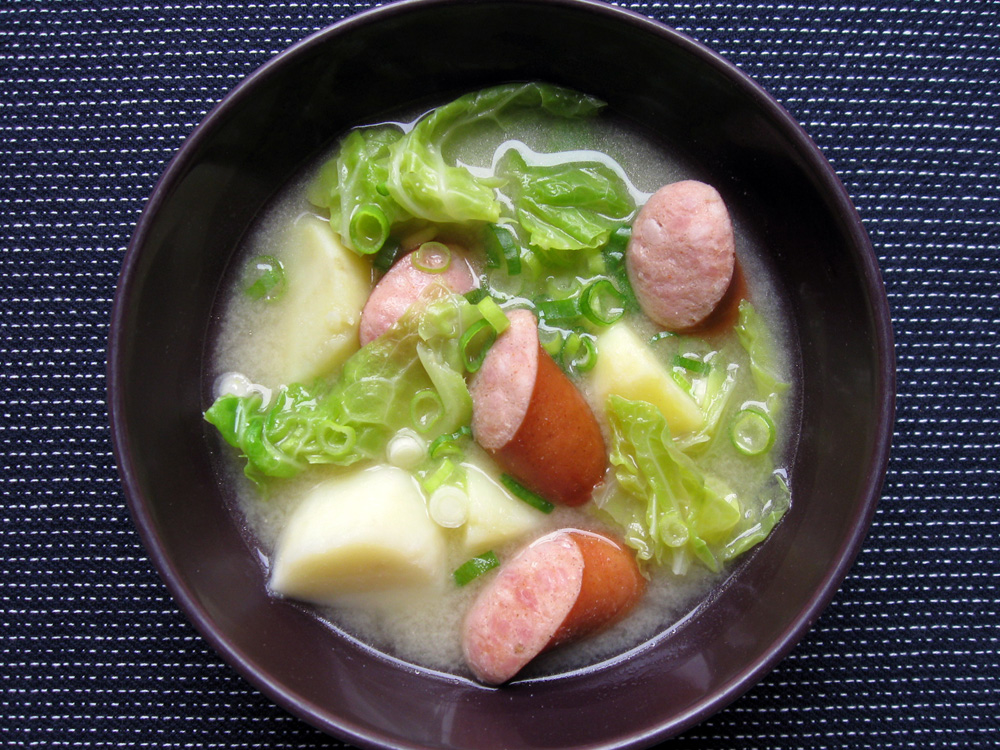 ‘Miso Soup’ is just a soup that is seasoned with Miso. Ingredients can be anything you like. Dashi Stock is traditionally used, but there are various opinions. You can use any soup stock that you like. Here is an untraditional Miso Soup of Smoked Sausages for you to try. Makes 2 Servings Ingredients 2 cups …