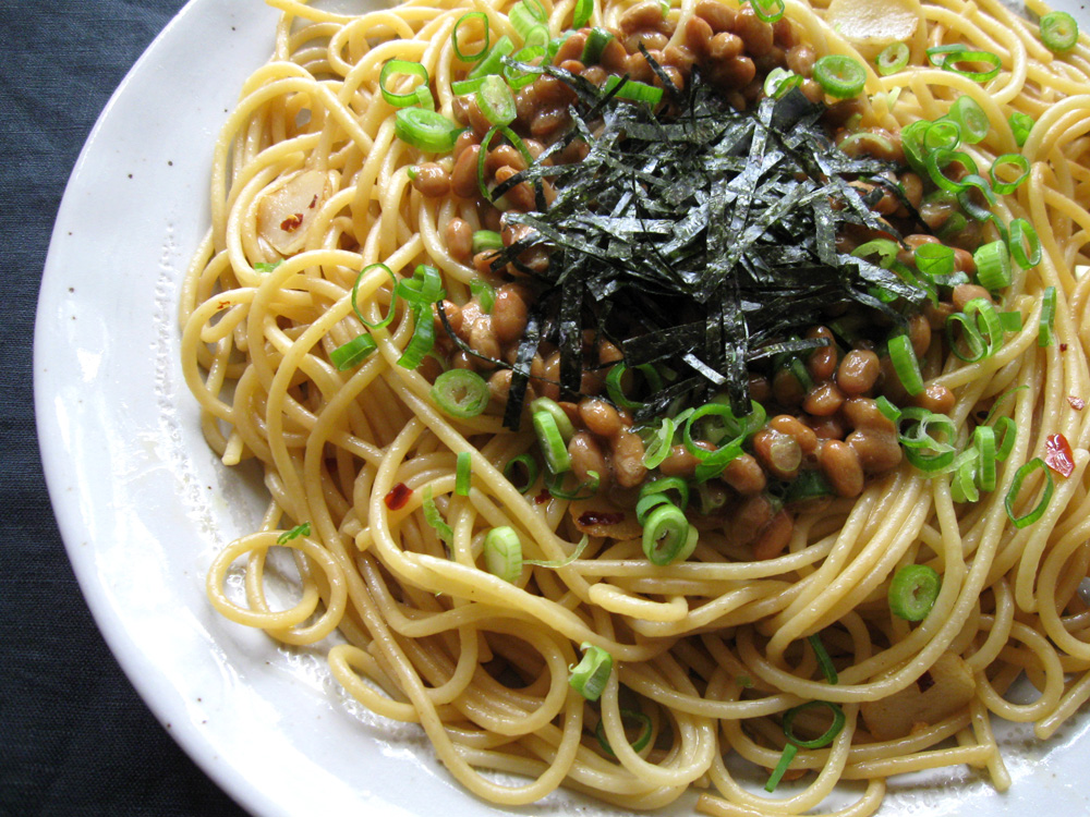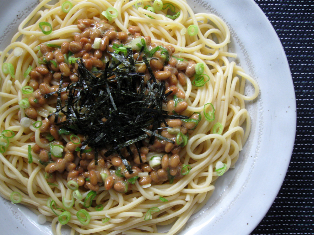 Nattō is fermented soy beans and naturally it is very nutritious. Many people eat it with hot steamy rice for breakfast. I love it with finely chopped fresh Spring Onions. Do you like Nattō? This ‘Nattō Spaghetti’ is quite popular in Japan, and I often cook it for my lunch. It’s absolutely easy to prepare …