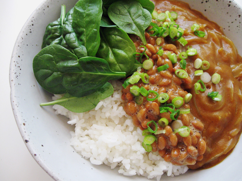 Many people know the health benefit of Nattō, the fermented Soy Beans, but are not willing to eat it because of its smell. Eat it with something that has more powerful smell such as Kimchi or Curry. The Curry can be prepared very quickly using Japanese Curry Roux or you may wish to use leftover …