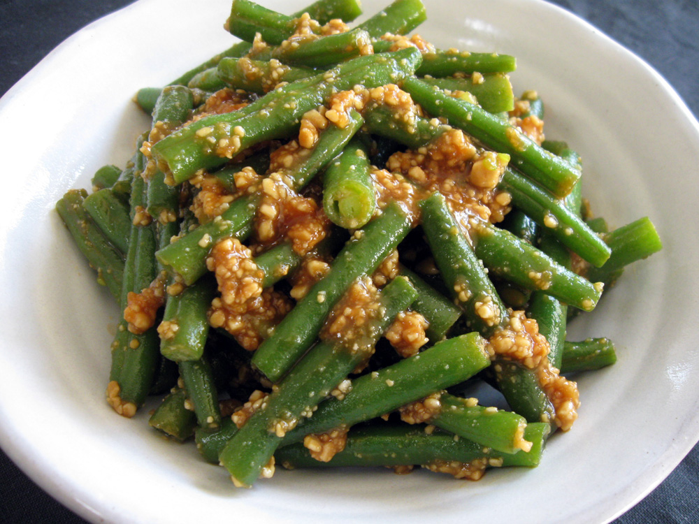 ‘Goma-ae’ is a very popular Japanese dish and it is made with ‘Goma-ae’ sauce, which is a sweet sauce of ground toasted sesame seeds and it goes very well with many vegetables. Sometimes ‘Kurumi’ (Walnuts) is used instead of Sesame Seeds, and the dish is called ‘Kurumi-ae’. You can use Peanuts, and the dish is …