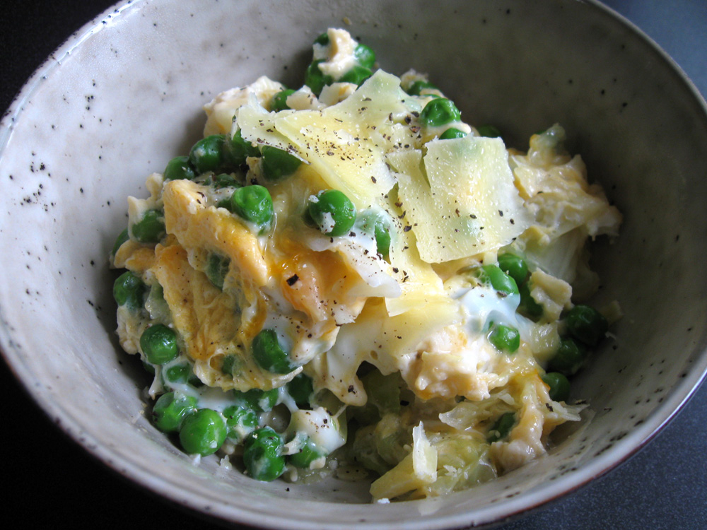 ‘Tamago Toji’ is a Japanese cooking method to bind the ingredients cooked in sauce or soup with ‘Tamago’, egg(s). Obviously, ‘Toji’ comes from a verb ‘tojiru’ that means ‘bind’. The method is popularly used. ‘Oyako’ Don is an example. This recipe uses Cabbage and Peas, but you can use whatever vegetables you have in hand. …