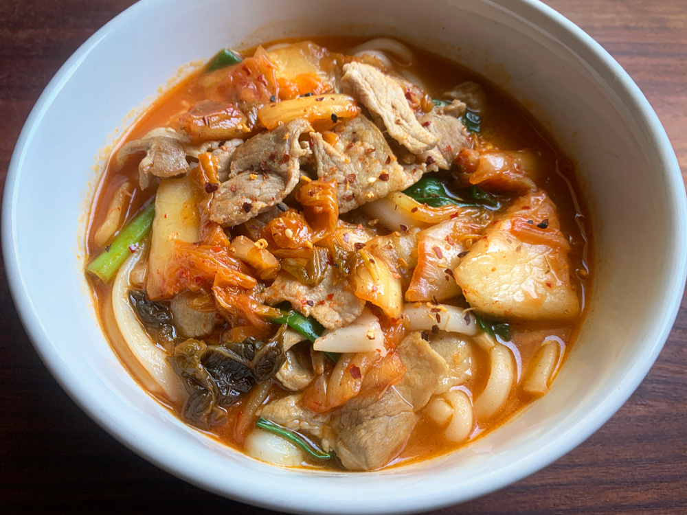 Chilli triggers severe sweating to me. I can’t tolerate very spicy food, but I love the spiciness of Chilli. Today I wanted to eat something spicy. I still had Kimchi in the fridge, so I decided to make this Udon Soup with the Kimchi. I added 1 tablespoon of Gochujang (Korean Spicy Miso) and Shichimi …