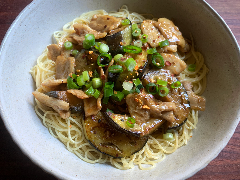 I used to cook this dish with Japanese thin noodles called ‘Somen’, but I use Capellini (Angel Hair Pasta) these days, because Capellini is much easier to find, cheaper, and I like its texture. The sauce has a typical Japanese flavour, that is made with Dashi, Soy Sauce and Mirin. The dish can be enjoyed …